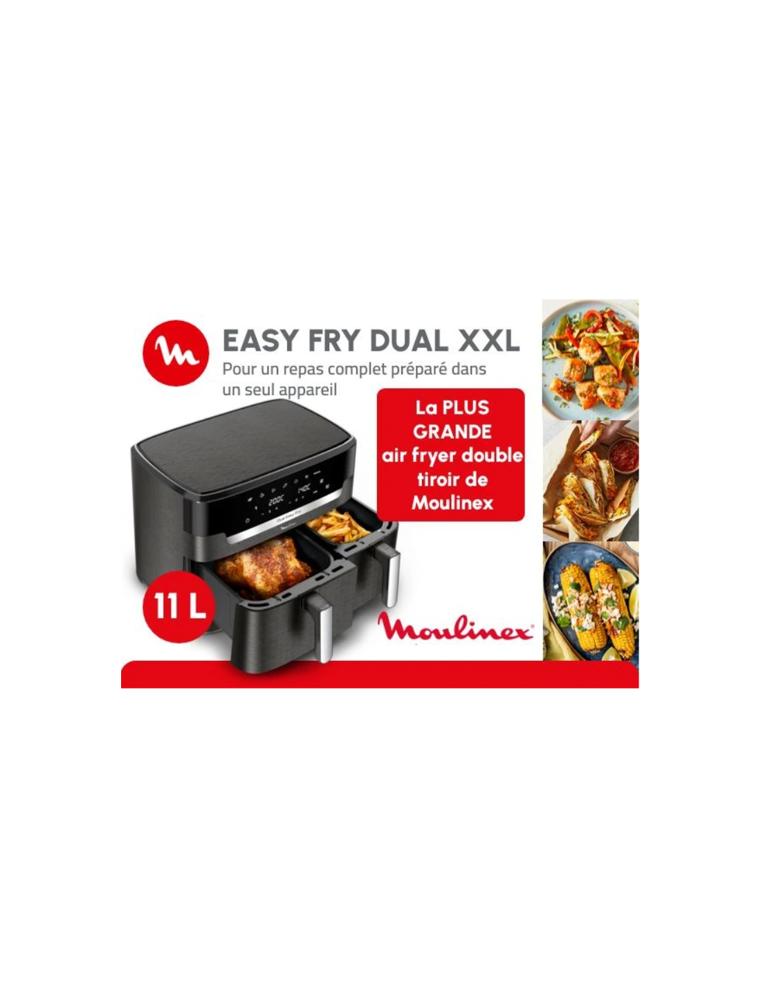 Découvrez la friteuse sans huile Moulinex Easy Fry Dual XXL 11L, l’appareil idéal pour cuisiner sainement et sans effort.