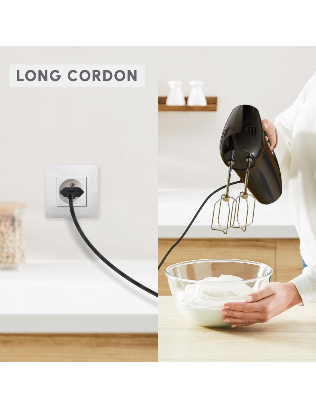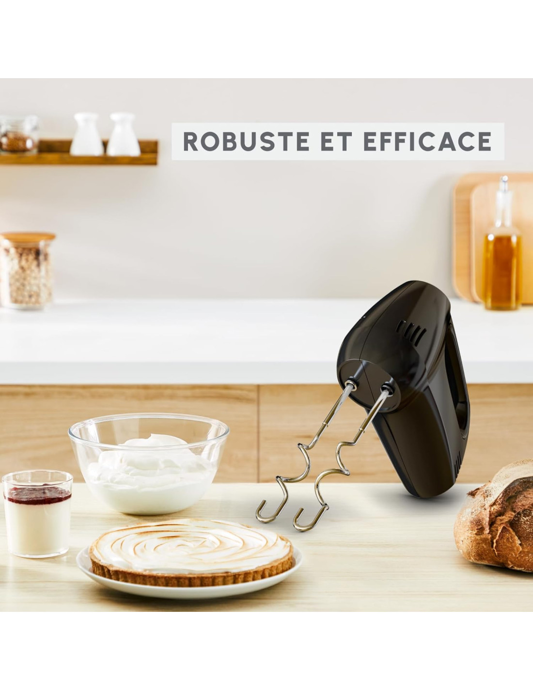 Batteur Electrique 300W – Noir – 5 vitesses + Turbo – Fouets et pétrins en inox