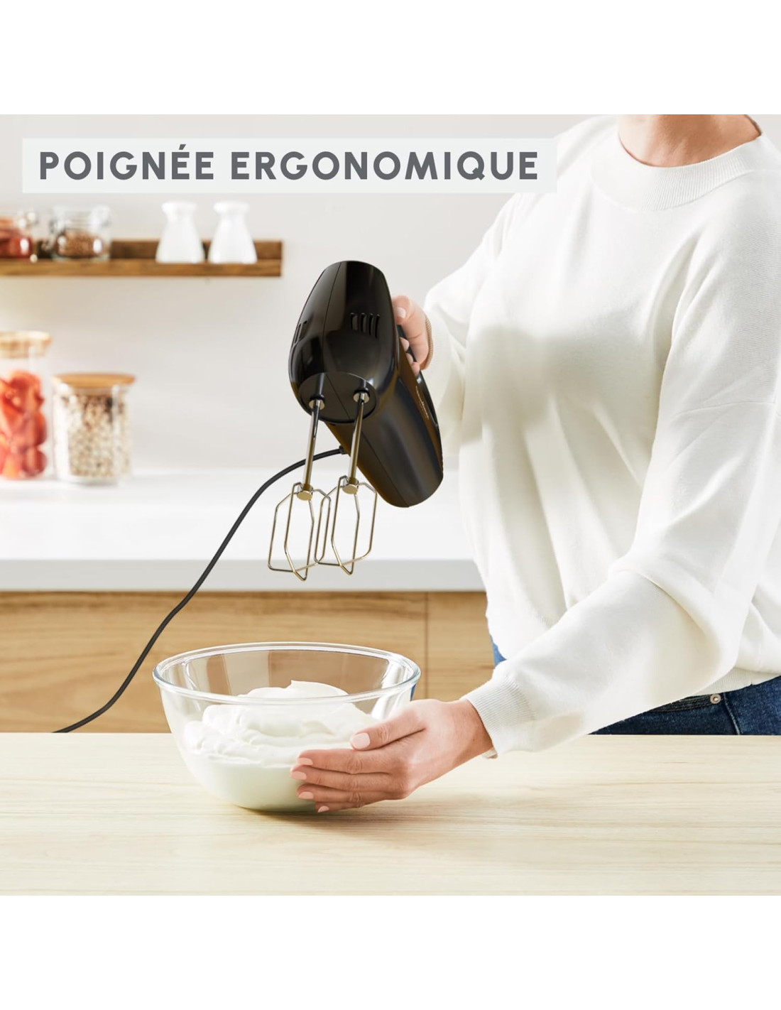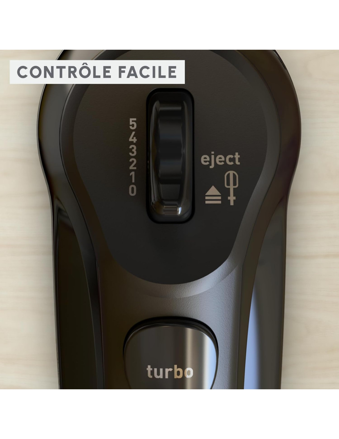 Ses fouets en acier inoxydable assurent une performance durable, tandis que sa poignée ergonomique offre une prise en main confortable. Facile à entretenir, ses accessoires passent au lave-vaisselle.