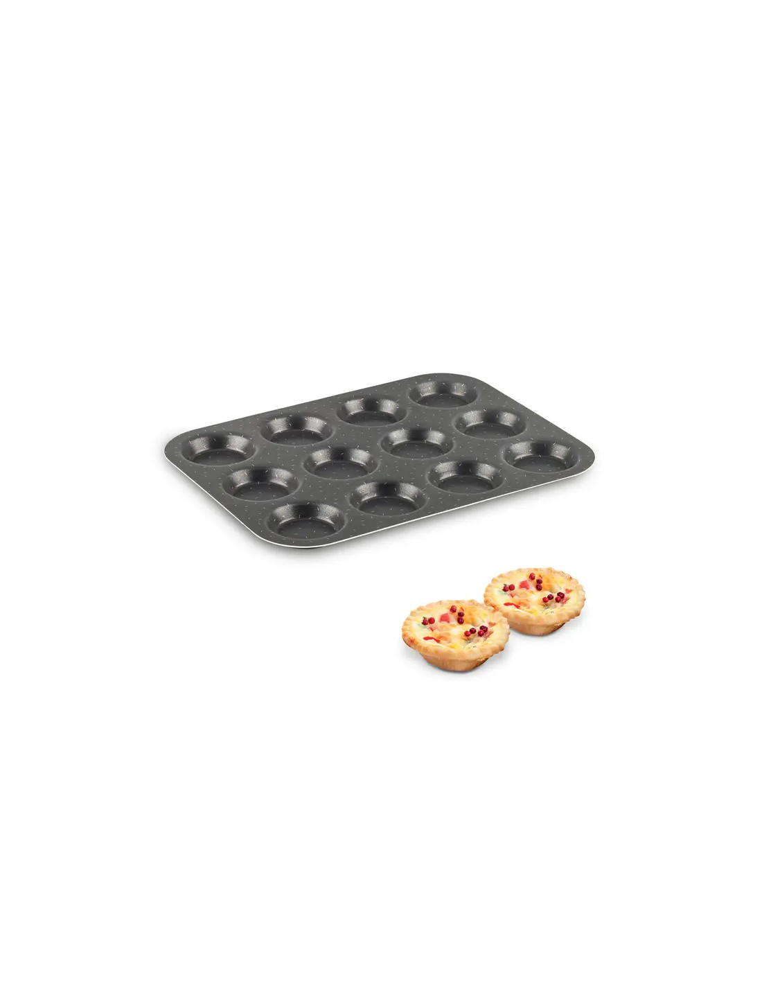 - Un moule à 12 mini-tartelettes doté d’un revêtement antiadhésif d’exception pour un démoulage facile et une cuisson parfaite